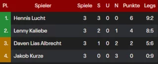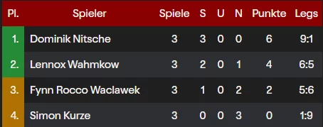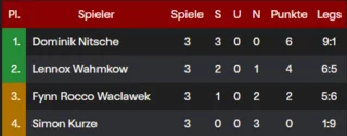 Unsere Warnower Jugend war heute (22.03.26) beim 5.Ranglisten-Turnier des DVMV mit dabei. Am Sonntag morgen machte sich Trainer Sascha Fuhrmann mit Lennox und Hennes auf dem Weg nach Rostock wo das Turnier in der Spielstätte der Bad Doberaner "Horde" stattfand. Beide Jugend Spieler haben sich hervorragend geschlagen und respektable Platzierungen erreicht Auch einige Highlights waren dabei. Hennes zeigte ein Shortgame 18Darter und Lennox ein Highfinish von 127. Am Ende belegte Hennes den 5.Platz und Lennox erreichte Platz 9 von 31 Teilnehmern. Herzlichen Glückwunsch an Euch