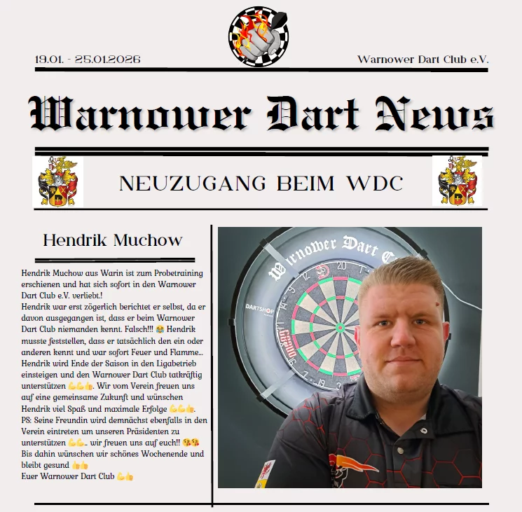 Der Warnower Dart Club e.V. bedankt sich bei allen Mitgliedern, Helfern, Fans und natürlich bei unseren Sponsoren für das Jahr 2025 und wünschen für das nächste kommende Jahr 2026 viel Glück, Gesundheit und weitere schöne Dart Momente.