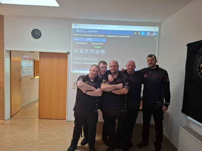 In einem spannenden Spiel bis zum Schluss stand es 10:10. Damit musste das Viertelfinale im Teamspiel entschieden werden wo die Mannschaft von Kapitän David Studt die Nerven behalten konnte und mit 2:0 Legs ins Halbfinale des SVB-Kurze Landespokal einzieht.