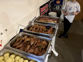 Essen und Getränke mussten organisiert werden, für die Kinder besorgten wir ein Karussell und Hüpfburg. Freunde vom Pepelower SV besorgten Bengalos. (für die richtige Atmosphäre.)